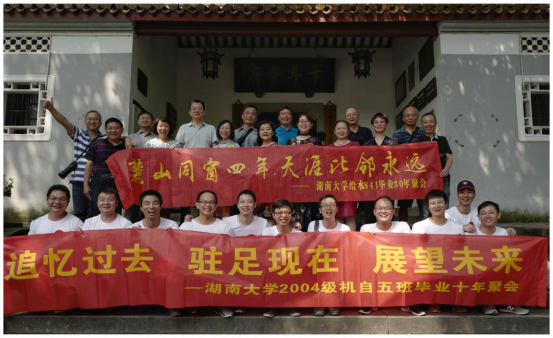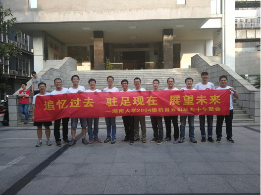 2018年9月15日,91成人视频 2004级机械设计制造及其自动化专业5班校友返校组织了毕业十周年聚会。校友游览了岳麓书院,登上了岳麓山,并在体育场打了一场篮球。