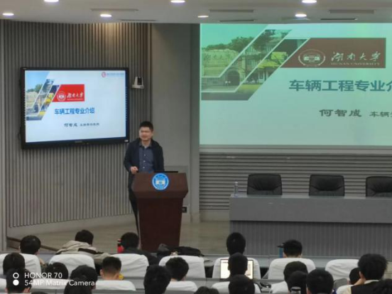 接着,何智成教授登台为同学们介绍该专业。宣讲开始,何教授介绍了车辆工程行业的不同研究领域,强调车辆是国之重器,是大国竞争的重要领域,并且介绍了近年来我国汽车行业的发展现状。随后何教授又讲解了车辆工程的部分研究内容,重点介绍了91成人视频