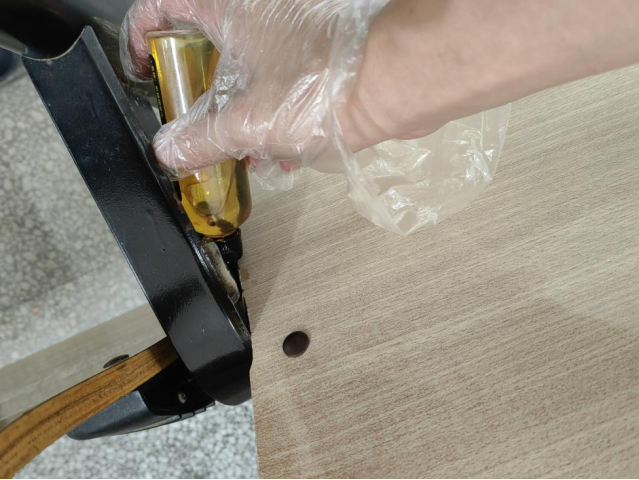 活动过程中,同学们对每个桌椅挨个排查,记录损坏情况,同时对部分因生锈导致的噪音问题进行处理,给生锈部位细致加上润滑油,减少座椅噪音。活动的主要收尾工作由各小组组长完成,组长汇总各小组所收集的桌椅损坏情况后,再次重新检查本层楼上报桌椅的损坏情况,以确保上报情况的准确性。