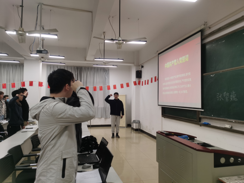 最后,刘培同志带领即将转正的预备党员宣读入党誓词,预备党员们怀着激动而庄严的心情宣读入党誓词,展现了他们坚定的理想信念和崇高的革命精神。