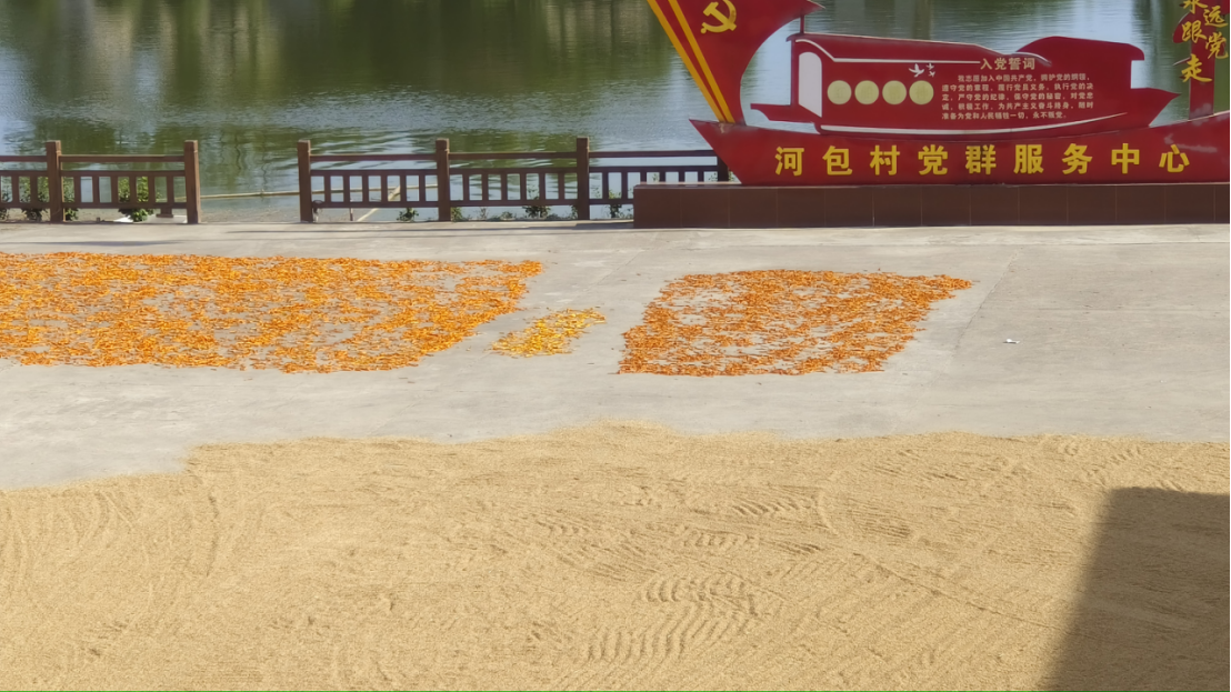我们到访了当地的党群服务中心,首先映入眼帘的便是正在晾晒着的金黄的稻谷,和坐落其旁的黄辣椒加工基地。村民在烈日的曝晒下仍然辛勤劳作,旁边晒着的黄辣椒也更显特色。当地的村干部高兴地告诉我们:“河包村近几年依靠黄辣椒特色产业,实现了村收入突破了百万的大关。”身边的村民也都洋溢着丰收的笑脸。