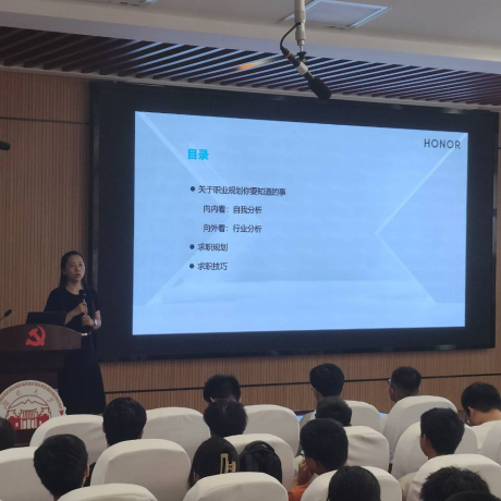 随后,她分享了面试中常见的问题及应对策略,以及如何制作出一份吸引面试官的简历的方法,还教学生如何在压力之下保持冷静,用具体事例支撑观点,展现解决问题的能力。同时,她还强调了自我介绍、职业规划等环节的重要性,并分享了多个优化话术的例子,让学生们受益匪浅。