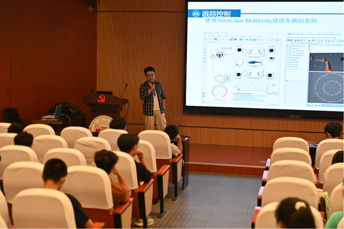 接下来,车队各部门负责人依次上台,详细介绍了各自团队的工作内容与日常趣事。从负责车辆设计与制造的技术部,到保障车队运营的商业组,再到记录车队点滴的宣传组,负责人与新生们分享了各自团队在研发、训练、参赛中的故事。大家在分享中不仅讲述了车队如何克服技术难题,完成赛车设计与制造,还通过幽默风趣的语言,将暑期培训、参赛的点滴趣事娓娓道来,现场气氛轻松愉快。新生们被每一位车队成员的专业与热情深深感染,现场不时爆发出热烈的掌声与笑声。