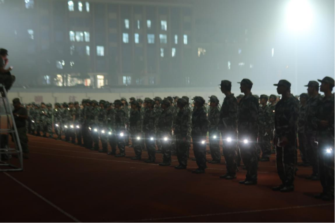 10月16日晚,由于前日下午受降雨影响而暂停的军训活动,终于在夜幕低垂时迎来了首次晚训。在这个特别的夜晚,同学们的热情如同夜空中的繁星,闪耀着青春的光芒。