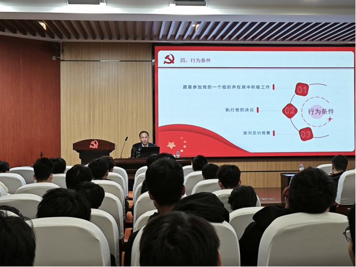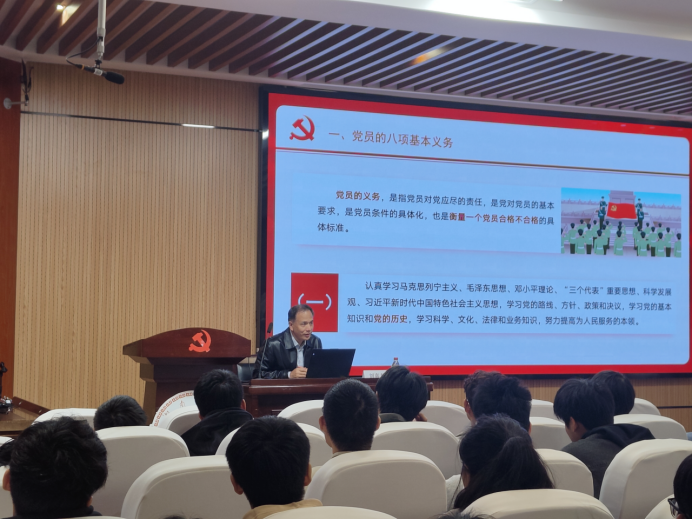 党委书记刘喜东为培训班学员讲授题为“牢记权利义务,争做先锋模范”的党课。刘喜东老师从认真履行党员义务、正确行使党员权利、辩证统一地认识党员的义务与权利三个方面,给同学们讲解了党员的义务和权利,同时介绍了入党条件与入党发展程序,并围绕党员应具备的基本条件进行了深入的剖析。最后,刘喜东老师对全体学员寄予殷切期盼,鼓励同学们积极向党组织靠拢,切实端正入党动机,走好入党第一步。