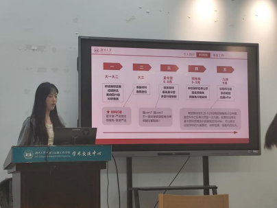 诸葛谕霏同学则从整体上介绍了保研工作的流程,重点讲解了个人简历的撰写、保研时间线的规划以及前期准备工作的要点。她特别强调了面试PPT的内容划分与科研竞赛项目的总结方法并总结了面试时常见的问答题目,为同学们提供了实用的应试技巧。
