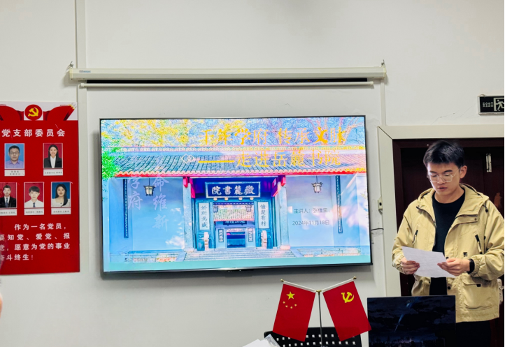 创新创业教育中心党支部举办了一场以“院史校史、书院文化、湖湘文化、革命文化、红色经典”等主题为核心的演讲活动。活动不仅展示了湖大学子对历史文化的深入理解,也体现了青年党员在传承中华优秀文化和革命精神中的责任与担当。