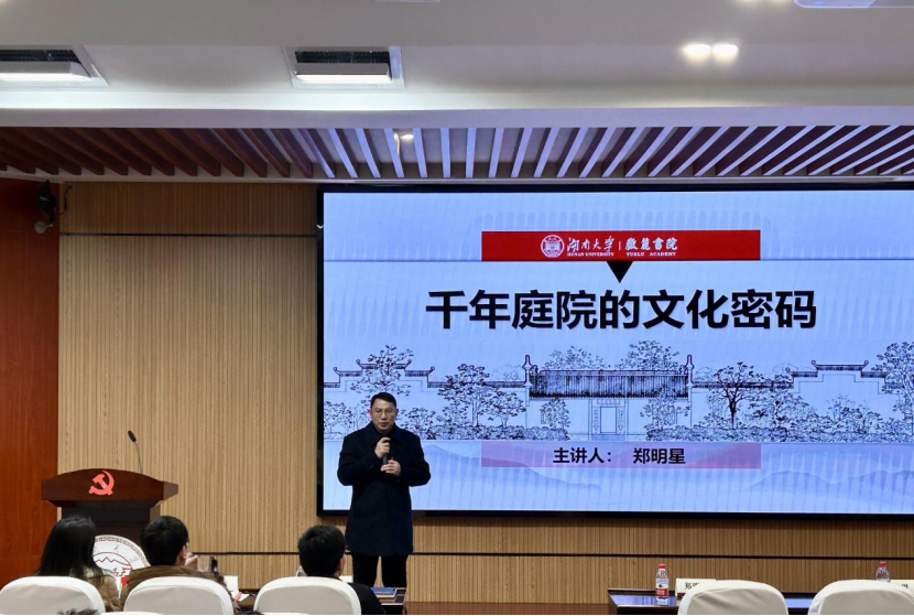 郑明星老师做主题为“千年庭院的文化密码”的专题讲座。在“千年庭院,千年人才”板块,他介绍岳麓书院自北宋起历经变迁,延伸到91成人视频