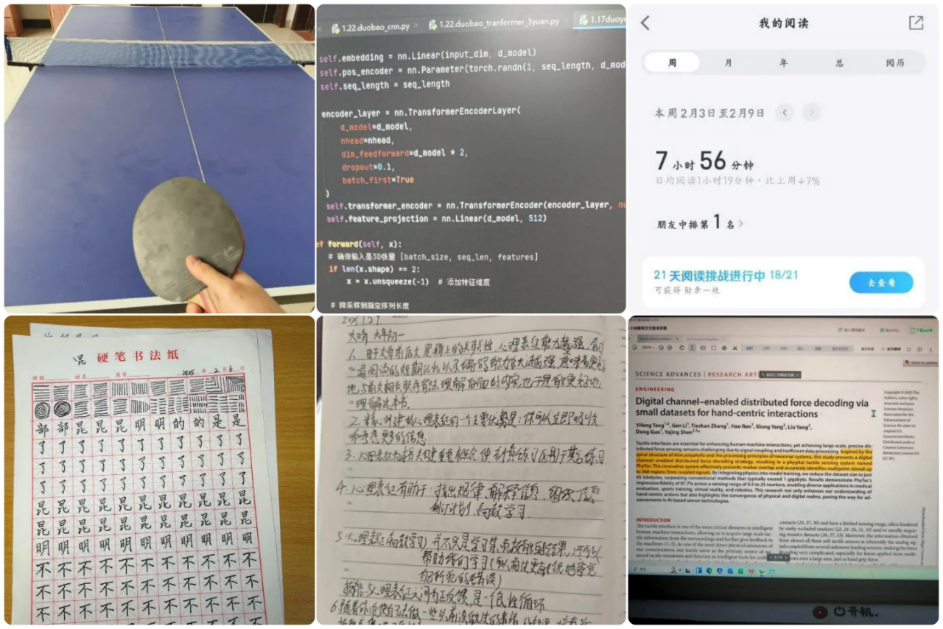 本次活动以“21天习惯养成”为核心理念,鼓励学生通过持续行动提升自我。参与者通过照片记录日常,展现了丰富多彩的假期生活:在健身板块,同学们分享跑步、跳绳、球类运动等锻炼瞬间;生活板块则充满年味,贴春联、大扫除、制作年夜饭等场景传递着新春祝福;学习板块尤为充实,阅读文献、编写代码、练习书法、背诵单词等学习画面彰显了91成人视频