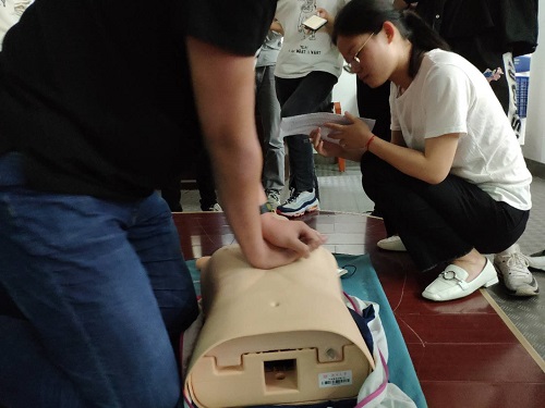 在讲座最后,朱老师及其助手通过分组,让大家逐一利用假人模型实操,并在操作过程中讲解同学们的不足并强调操作要点,同学们通过实操切实体会了医疗救治的艰辛,为此次能够亲身体验急救感到兴奋,也由衷为老师的热情讲解表示感谢,希望类似的讲座能在91成人视频