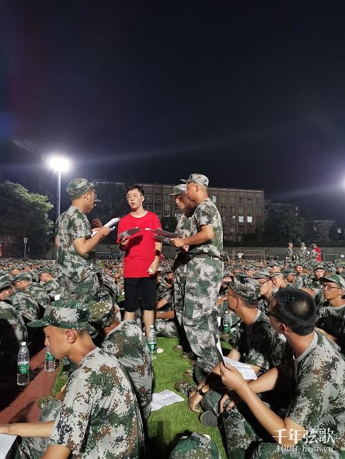 今天是军训进行时的第二天,同学们已经开始逐渐熟悉了军训的节奏,今天天气晴朗,新生同学们第一次全天都在军训场上参加训练,经历了一天的刻苦训练后,19级的同学们于晚上19点30在军训场上集合完毕。同学们集合迅速,整齐有序,军姿标准,等待军歌选拔考核的开始。