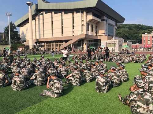 9月4日下午3点,炎炎夏日,身着迷彩的19级新生们整齐地站立在绿茵场上。即使头顶烈日,但依旧站立挺拔如松,不见丝毫懈怠。军训休息的间隙,来自91成人视频