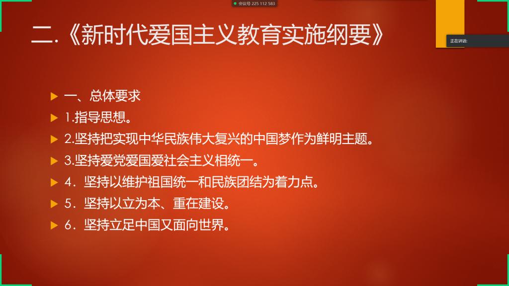 接下来,高锦程同学带领我们学习了《新时代爱国主义教育实施纲要》,通过这一过程,同学们明白了爱国的重要性,培养了同学们的爱国精神。