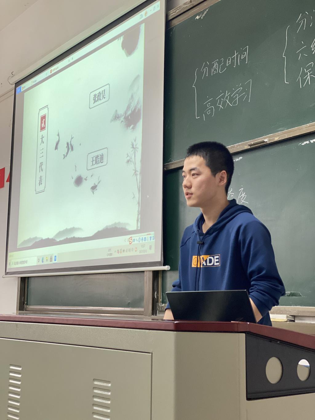 祝晓龙学长引用最近两会中习近平总书记的话,从宏观的角度告诉我们要在本科阶段打好基础、打牢基础。思维层次不能只限于目前课程学习上,而是要将视野放长远,面向国家、社会的重大需求。同时,他通过自己本科时的例子跟我们说明了做好计划的重要性,要把每一件事都做深做透,切忌广而不精,泛而不深。最后,他送给我们一句祝愿:“脚踏实地,仰望星空。”