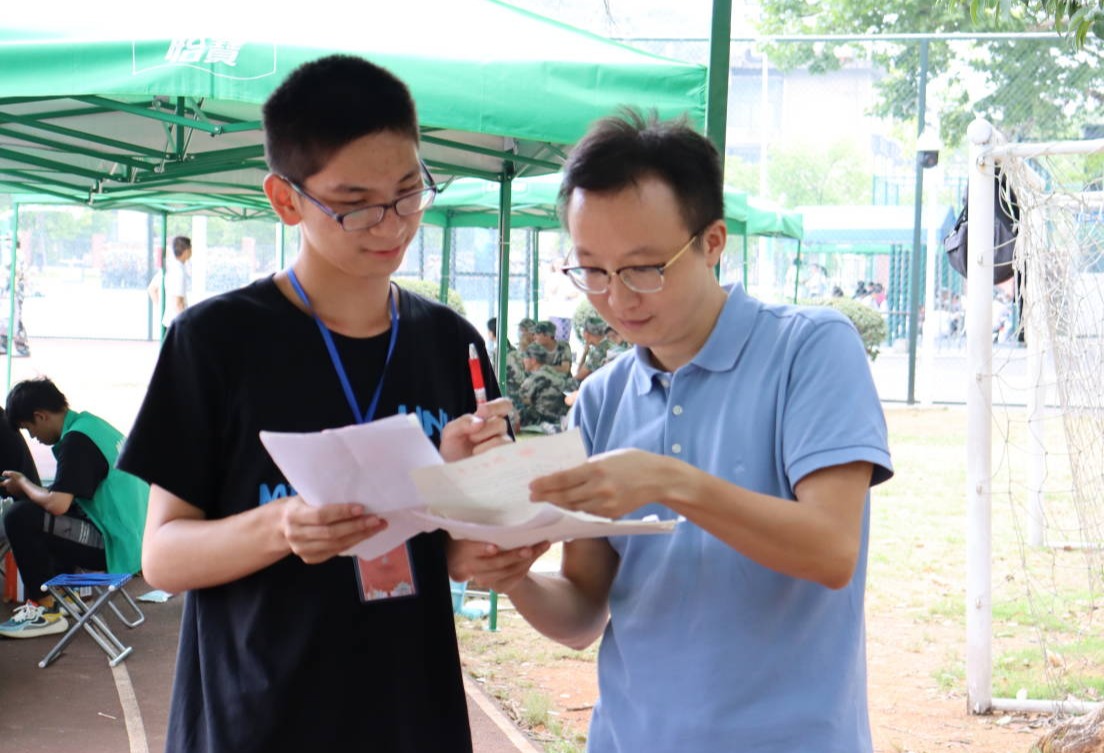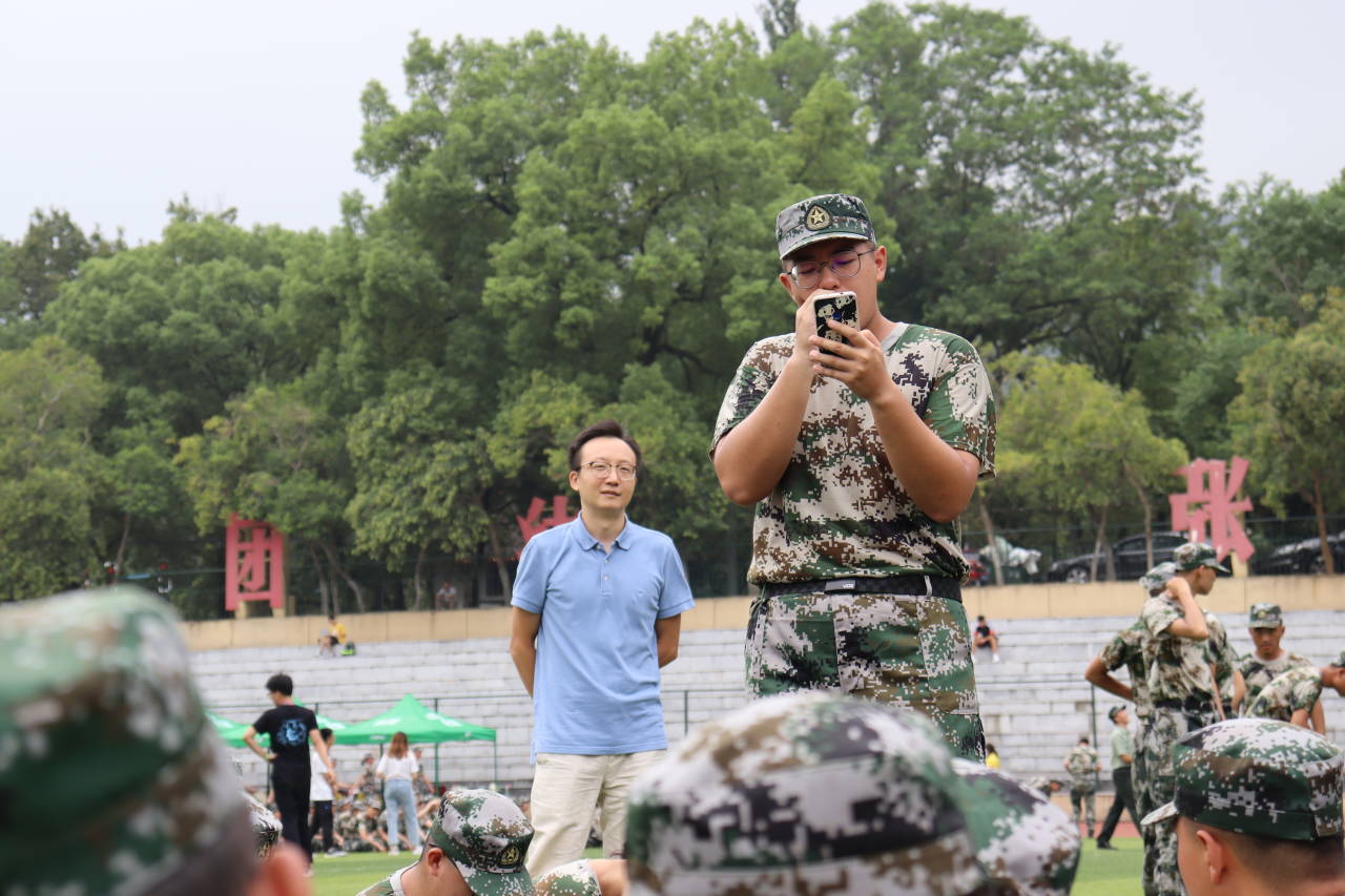 在“组织休息”的哨声吹响后,刘文洋老师和新生助理一起去方阵看望了二营二连一排的新生。还没走到新生所在的方阵,他们就以热烈的掌声表示欢迎。刘老师在对新生的讲话中表示,军训是新生适应大学生活,熟悉周围环境的有效方式。军训虽然艰苦但同样有很多值得回味的瞬间,希望大家珍惜在一起的时光,和谐相处,共同进步。