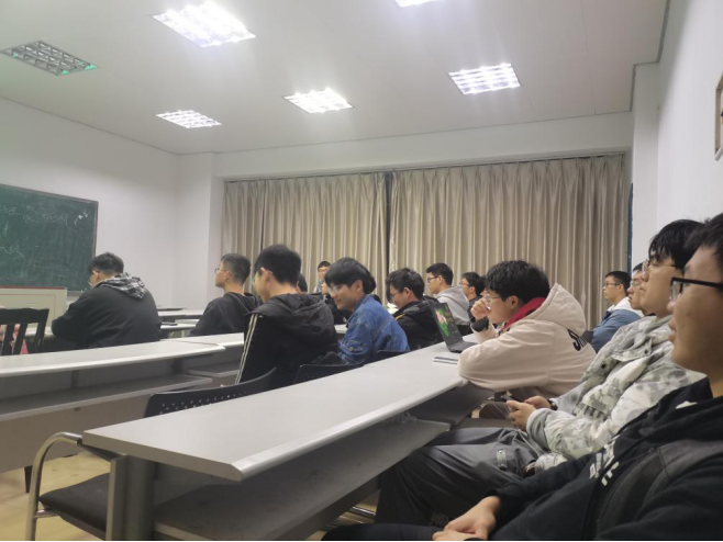 接下来由学习委员王瑞祥同学详细介绍了期中考试的情况,其中概率论零挂科,理论力学和大学物理则是挂科重灾区。学习委员就这个问题也提出了自己的看法,学委认为,这次考试题目其实不算太难,平时作业认真完成,考试就基本不会挂科。大家表示赞同。接下来学委详细介绍了各个科目成绩的详细情况,发掘出数个隐藏的大佬,例如向人强同学各科目均取得了不错的成绩。班长许少辉同学也榜上有名,是我们学习的榜样!