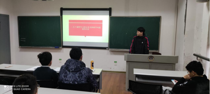 综合楼512教室召开了本学期第一次班会。在本次班会中,学委向同学们报告了上个学期班级同学的学习情况并对此向同学们做了相关分析。