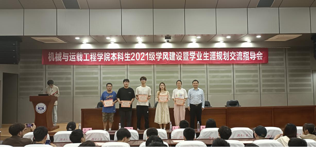 本科2021级学风建设暨生涯规划交流指导会在逸夫楼报告厅召开。学院党委副书记贺迅老师、本科2021级辅导员方婷出席。