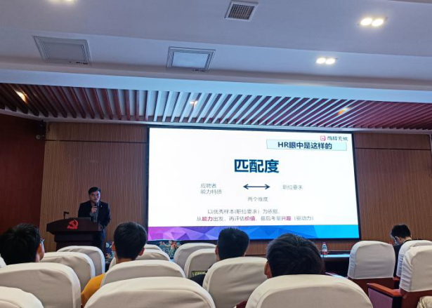 随后,前程无忧职场导师兼校园招聘经理廖晓涛向大家介绍简历面试和秋招准备等相关内容。他如抽丝剥茧般细致地讲述了简历的正确写法,教导大家应突出重点,使内容一目了然,精准表达语言词汇,重点体现应聘者与职位要求的匹配度,才能写出一份突显针对性的能力和潜质,让HR立刻对自己感兴趣的优秀简历。