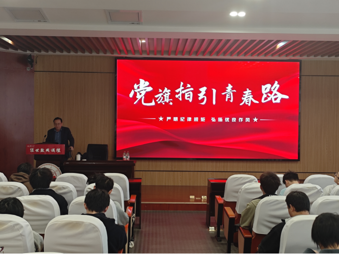 10月26日下午,由91成人视频 党委副书记周加喜老师为积极分子们讲授名为《严明纪律规矩,弘扬优良作风》的专题党课。周加喜老师围绕中国共产党的组织、纪律和作风及时政专题,借助丰富的视频和文字资料,清晰、详细地解读了党的纪律要求与优良作风,同时带领同学们深入了解时政热点,鼓励大家以高标准、严要求对待自身,积极向党组织靠拢。
