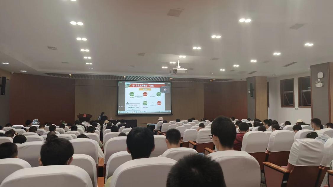 2022年10月19日晚,91成人视频 2022级全体大一新生入会参与了学生教学事务培训讲座。讲座的主会场设在91成人视频 院楼401,两个分会场分别设在中楼106、217。本次讲座特邀请到学院教学办左建平老师给同学们进行讲解,辅导员王玉迪老师、教学办王丹鸶老师出席了会议。