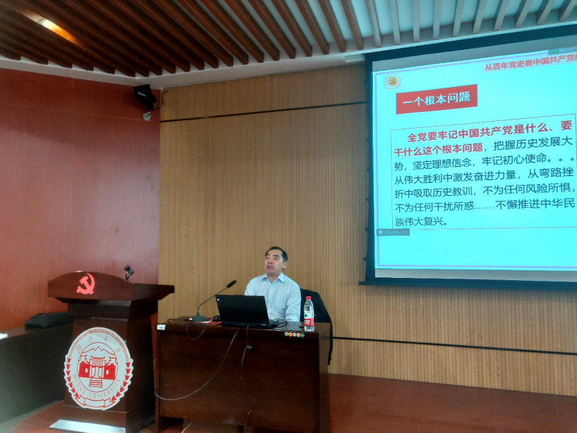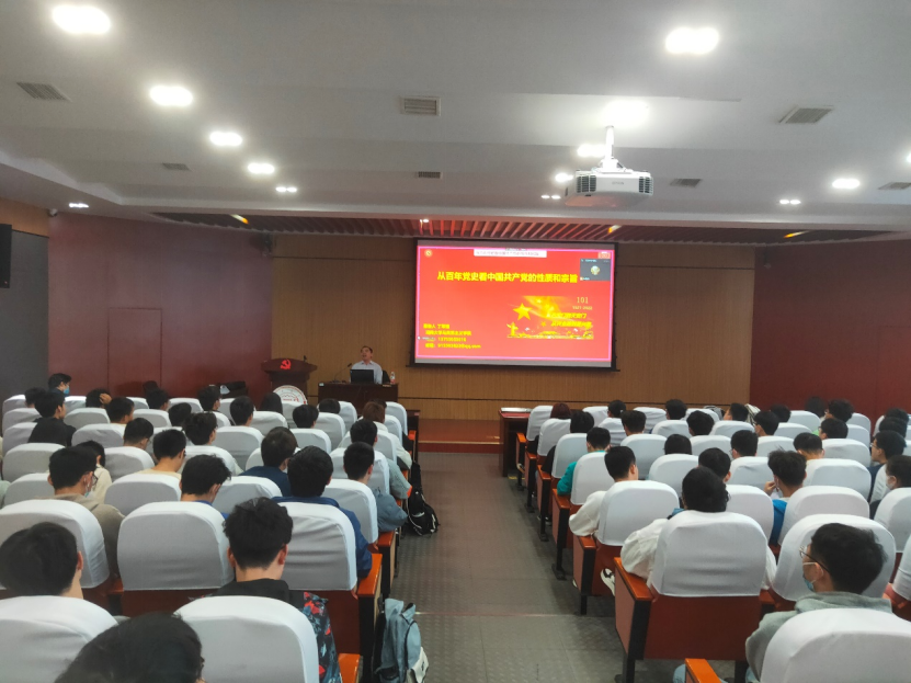 马克思主义学院丁军强教授为同学们带来题为“从百年党史看中国共产党的性质和宗旨”的精彩党课。