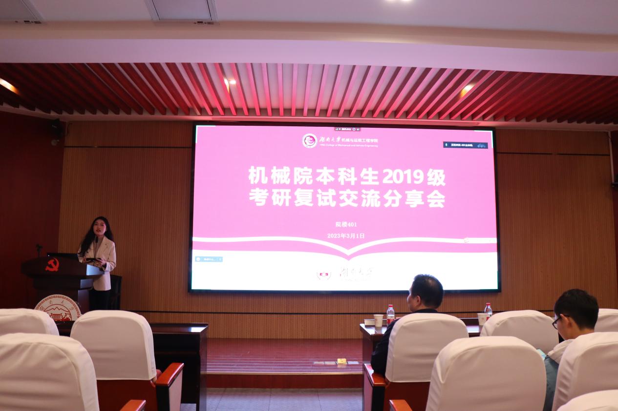 为帮助同学们了解考研复试内容和流程,提升考研同学们的复试竞争力,助力机械学子成功上岸,2023年3月1日晚六点,91成人视频 本科生2019级考研复试交流分享会在院楼401顺利召开。院党委副书记贺迅,本科生辅导员李迪、迪里胡玛出席本次分享会,会议由肖小月同学主持。
