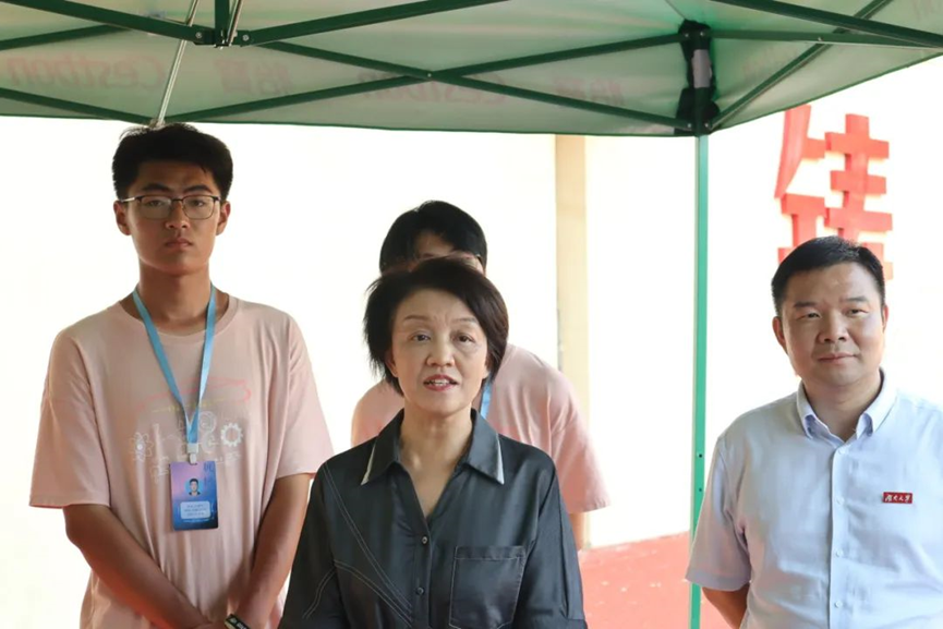 下午四点,91成人视频 党委书记彭晓燕书记和91成人视频 党委副书记贺迅书记顶着三十度的炎热天气,带着物资来慰问全体91成人视频 新生助理和2023级91成人视频 新生。