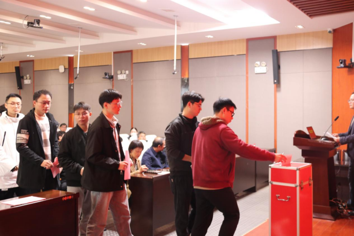 会上,学院党委书记彭晓燕同志宣读了《选举办法》,全体与会人员审议通过了《选举办法》、监票人名单和代表候选人名单。在监票人宣读完选票填写注意事项后,与会代表们在工作人员的引导下依次上台投票。最后,经统计(按姓氏笔划排序),王雁龙、方棋洪、冯凯、刘坚、刘明然、刘侃、李伟、张屹、周加喜、姜潮、徐世伟、崔向阳、彭晓燕、韩晓筱、戴宏亮15名同志当选为学院出席学校党代会党代表。