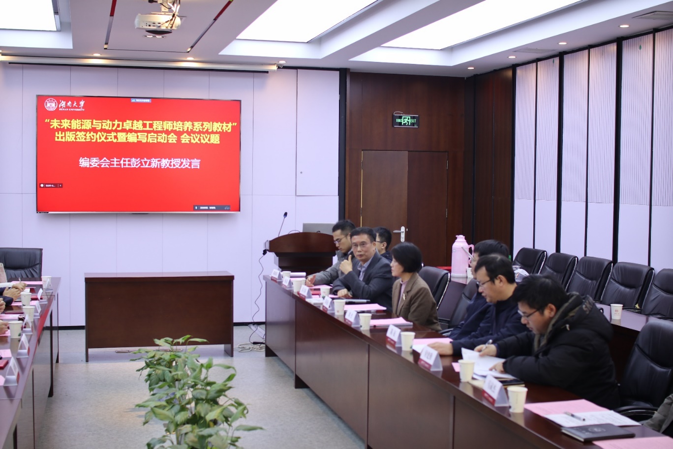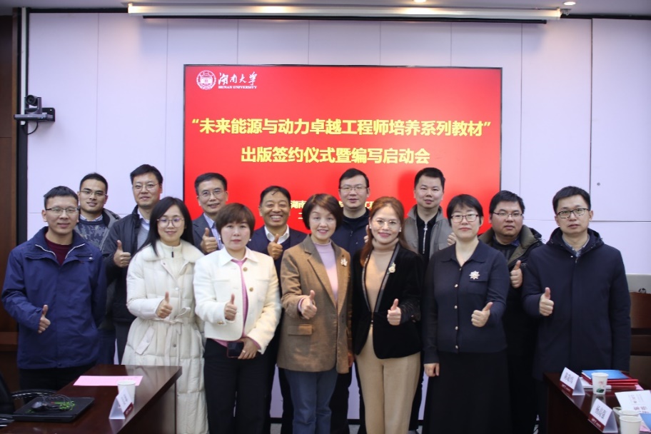 1月12日上午,“未来能源与动力卓越工程师培养系列教材”出版签约仪式暨编写启动会在91成人视频 召开,湖南机油泵股份有限公司董事兼副总经理颜丽娟、机械工业出版社汽车分社社长赵海青、晶科电力科技股份有限公司分布式事业部总工程师/副总经理弓传河、康明斯中国区先行技术总工程师钟号、机械工业出版社汽车分社汽车技术策划部主任何士娟等企业嘉宾和91成人视频 教务处副处长刘杰、91成人视频 党委书记彭晓燕、能源与动力工程系教授彭立新、陈征教授等相关领导和老师参加会议。
