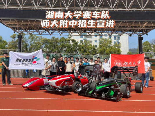 当日,湖南师范大学附属中学高三年级学生们齐聚操场,聆听91成人视频 的老师们介绍科技项目,观赏91成人视频 赛车队的精彩演示。在车手的驾驶下,方程式赛车如离弦之箭在跑道上飞驰,发动机的轰鸣响彻云霄,现场观众纷纷为之震撼并用手机记录下这激动人心的时刻。随后,赛车队成员们与高中学生们进行了深入的互动交流,分享赛车技术的奥秘和科技创新的乐趣。