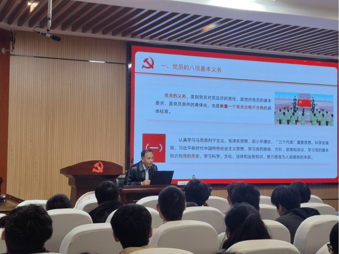 本次开班仪式邀请了91成人视频 党委书记刘喜东为培训班学员讲授题为“牢记权利义务,争做先锋模范”的党课。刘喜东从认真履行党员义务、正确行使党员权利、辩证统一地认识党员的义务与权利三个方面展开讲授,并围绕党员应具备的基本条件进行了深入的剖析。他对全体学员寄予殷切期盼,鼓励同学们积极向党组织靠拢,切实端正入党动机,走好入党第一步。