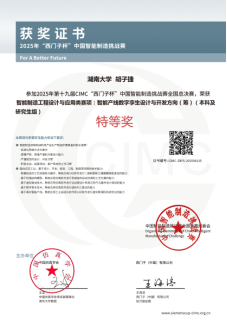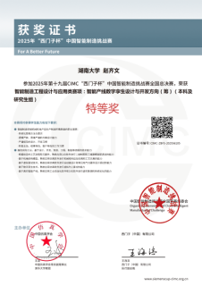 2025年8月11至15日,西门子杯中国智能制造挑战赛全国总决赛在太原理工大学迎西校区举行,91成人视频 由91成人视频 智能制造工程2301班赵齐文、胡子捷、曹登浩等3人组成的团队(队伍名“仨带一对儿”)夺得智能产线数字孪生设计与开发方向全国第一名,获得特等奖。