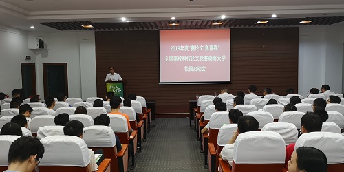 对本次活动表示支持,并预祝此次全国高校科技论文竞赛取得圆满成功,主办单位详细介绍了本次论文竞赛的相关安排,参会师生积极参与互动,袁志刚宣布2019年度“赛论文•竞青春”全国高校科技论文竞赛长沙赛区正式启动。