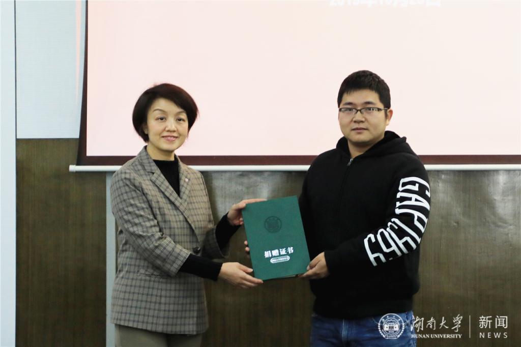 师生代表、学校教育基金会相关负责人出席捐赠仪式。