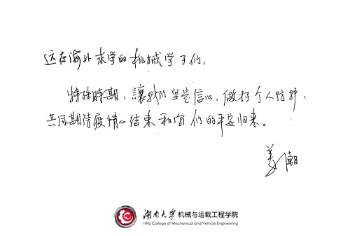 当前,国外疫情防控形势严峻,学院老师们无时无刻不牵挂着远行的你们,期待着你们平安和健康!病疫终将被战胜!