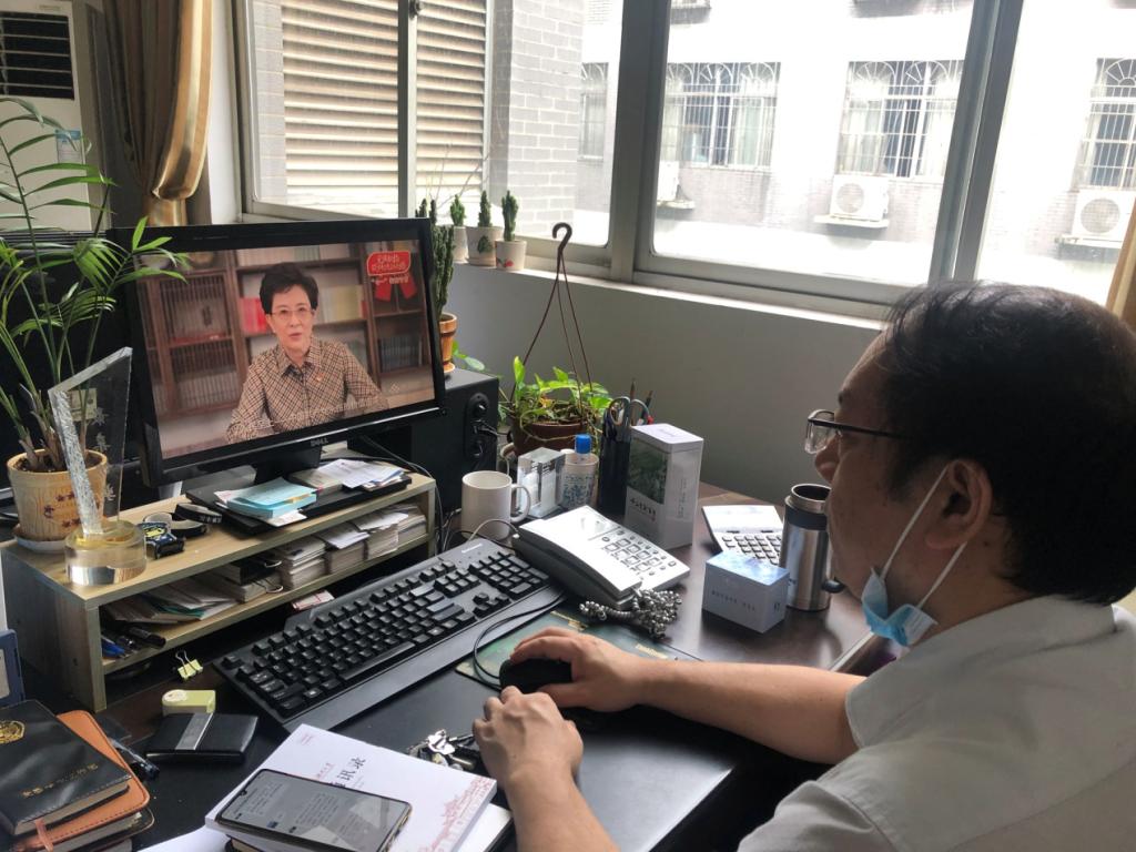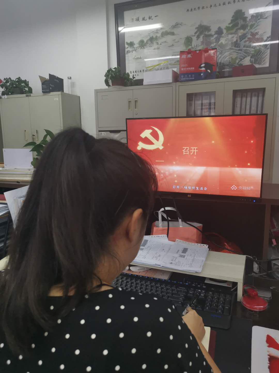 师生党员结合学习工作实际,采取集体观看与个人自看相结合方式,通过电脑端、手机端等网络途径现场观看“党旗飘扬•筑牢红色防火墙”高校党组织战“疫”示范微党课。