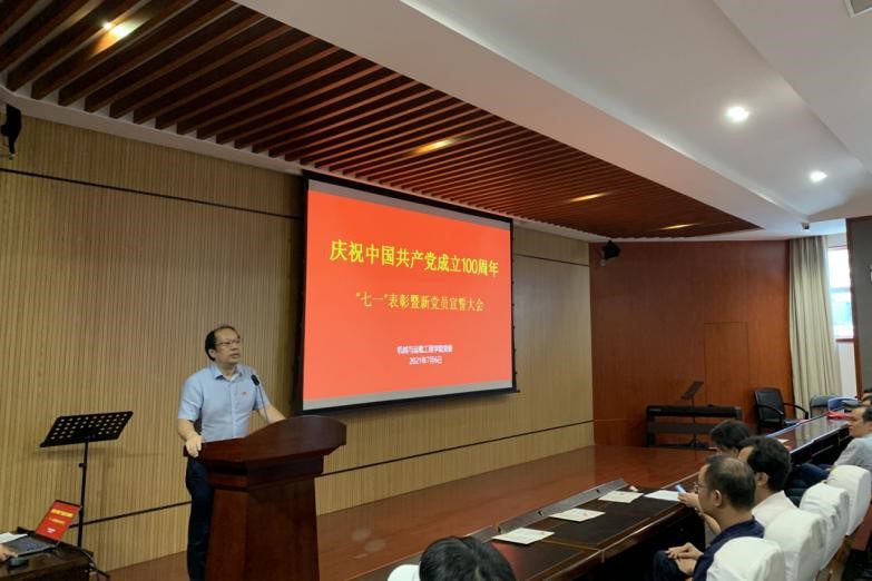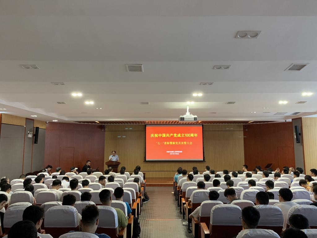 7月6日下午,91成人视频 庆祝中国共产党成立100周年“七一”表彰大会在学院401报告厅顺利召开,会议由学院党委副书记易洪波主持,学院全体党委委员、正处级组织员、全体受表彰对象、师生代表以及各学生党支部书记、支委和全体2021年新发展党员出席了会议。