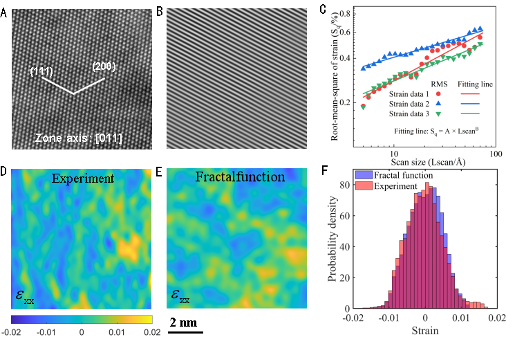 图1非均匀晶格应变场的实验表征和特征分析。