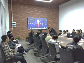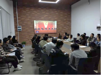 图:党支部成员正在听讲并学习观看十九届六中全会及视频会议