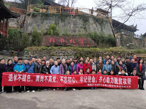 离退休党支部开展“退休不褪色,离岗不离党,不忘初心,牢记使命,齐心助力脱贫攻坚”主题党日活动。此次由离退休支部书记李孟仁书记及五位支委带队,学工办老师郑朝阳老师、闫智琪老师随行,共55位老师赴花垣县十八洞村参加活动。通过参观学习,广大党员深受教育,充分认识和领会习近平总书记精准扶贫精神。