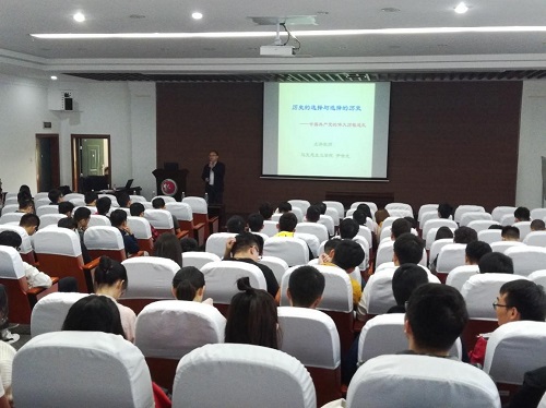 仪式结束后,尹世尤老师就党的“光辉历史”展开了叙述,他通过丰富的历史事件向大家缓缓叙述了党自建立以来走过的波澜壮阔而又艰难曲折的奋斗历程,以及取得的举世瞩目的辉煌业绩,让全体新生党员进一步全面认识党的历史贡献。讲述过程中,尹老师放映了部分红色革命视频,包括一大会议的召开、改革开放和近代的“胡温”新政,这些历史事件让大家更加清楚地认识到现在美好的生活来之不易,更需要当代新生党员不忘初心,砥砺前行。